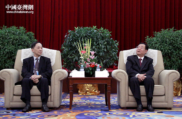 23日上午,中共中央政治局委员、全国政协副主席王刚在北京会见了出席首届两岸和平发展法学论坛的台湾法学界法律界人士。(中国台湾网  普燕摄)