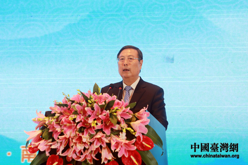海峡两岸企业家紫金山峰会19日上午9时在南京紫金山庄会议中心紫金厅举行开幕式。全国政协副主席、全国工商联主席黄孟复出席开幕式并致辞。(中国台湾网 王伟 摄)