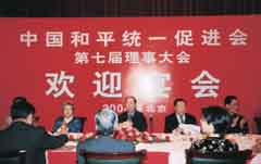 成思危、张克辉、黄孟复、孙孚凌、万国权等出席大会。来自世界各地40多个国家和地区的中国和平统一促进会代表和各界理事 300多人参加了会议。