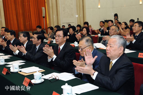 中国和平统一促进会副会长周铁农主持会议。中国和平统一促进会副会长何鲁丽、罗豪才、张克辉及常务理事出席会议。