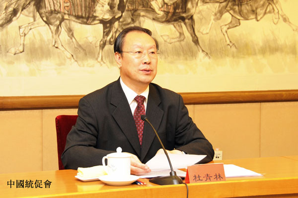 杜青林对今后统促会的工作提出四个期望:要坚持深入贯彻中央对台方针政策与发挥中国统促会自身优势相结合,发挥好联系广泛、包容性强、人才荟萃和方式灵活的优势,找准围绕中心的切入点,选准服务大局的突破口,切实把中央对台方针政策落到实处;要坚持反对“台独”等分裂活动与争取人心相统一,在反对一切形式的分裂活动上下功夫,在密切两岸同胞联系上下功夫,在巩固和拓展入岛交流成果上下功夫,为争取人心营造有利氛围、创造良好环境;要坚持深化调查研究与推进机制建设相统筹,要切实加强调查研究工作,大力推进工作机制建设,增强工作的针对性、预见性和有效性;要坚持开展业务工作与加强自身建设相协调,充分发挥专业委员会的独特作用,继续加强中国统促会机关建设,进一步优化整合资源,以自身建设的不断强化推动业务工作的有效开展。