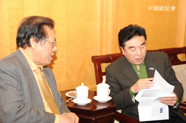 招待会由中国和平统一促进会执行副秘书长杭元祥主持,副秘书长朱京光、郝一峰、郑琴以及中国和平统一促进会秘书处有关部门负责人出席。