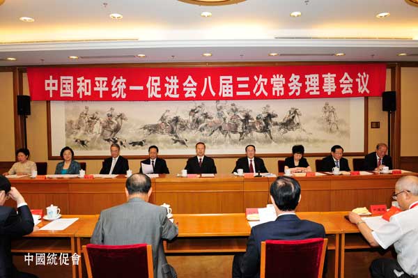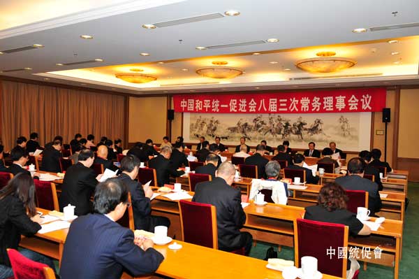 6月18日,中国和平统一促进会八届三次常务理事会议在北京召开。会议审议通过了关于召开中国和平统一促进会八届二次理事大会的决定;审议通过了有关人事增补和任免事项。