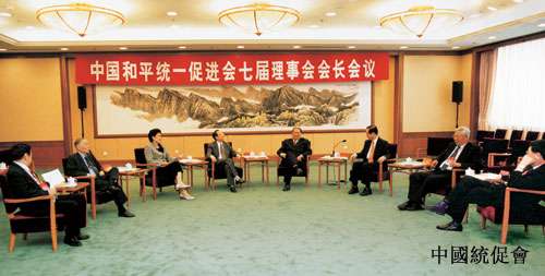 2004年9月27日,中国和平统一促进会第七届理事会会长会议在北京举行,中国和平统一促进会副会长成思危、蒋正华、韩启德、刘延东、罗豪才、张克辉、黄孟复,秘书长梁金泉出席会议,韩启德主持会议。会议一致推举全国政协副主席、中共中央统战部部长刘延东为中国和平统一促进会第七届理事会执行副会长。