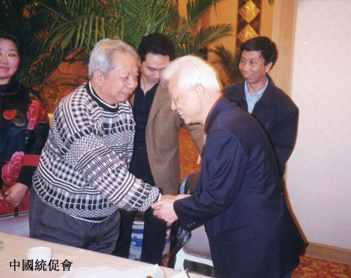中国和平统一促进会会长周铁农与画家亲切握手