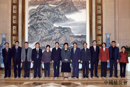 刘延东与中国和平统一促进会机关负责人合影留念 ,黄跃金(左六)、楼志豪(左九)参加