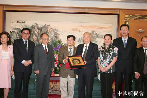 全国政协副主席、中国和平统一促进会副会长张克辉(右二)会见访问团成员