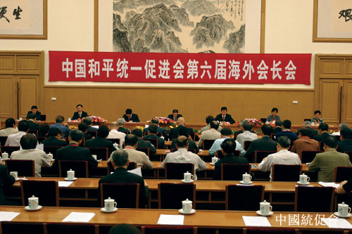 2007年9月25日,中国和平统一促进会第六届海外统促会会长会议在北京召开,来自70多个国家和地区的百余位海外统促会会长及有关人士与会。