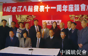 2006年1月26日,华盛顿中国和平统一促进会召开“纪念江泽民八项主张发表11周年座谈会”。华盛顿统促会理事和侨界人士30多人参加了座谈会
