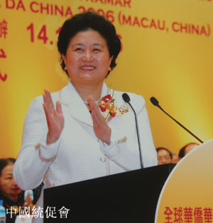 2006年12月14日至15日,全球华侨华人促进中国和平统一大会在澳门举行。来自全球50多个国家和地区的1000余名代表出席大会。中共中央政治局常委、全国政协主席、中国和平统一促进会会长贾庆林致信祝贺。