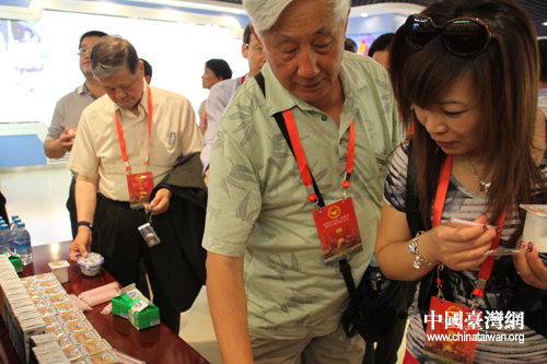 海外统促会会长参观考察完达山阳光奶业厂房后,争相试用完达山奶制品。(中国台湾网 徐维彬 摄)