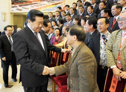 贾庆林在会见中国和平统一促进会第八届海外会长会议代表时强调