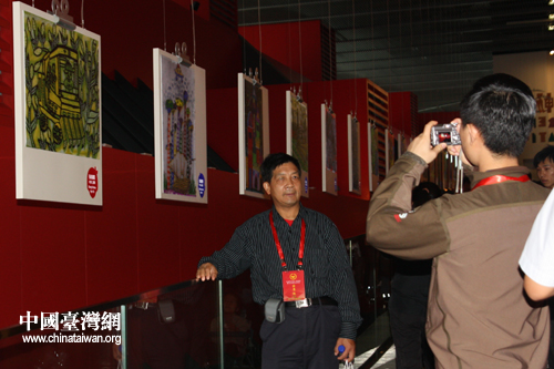 近150位海外统促会会长今日在沪参观了上海世博会,图为海外统促会会长在中国馆内拍照留念。(中国台湾网 杨丽 摄)