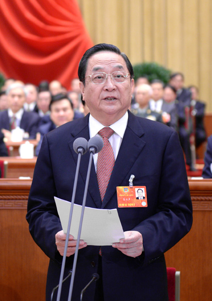 3月12日,全国政协十二届一次会议在北京人民大会堂举行闭幕大会。全国政协主席俞正声主持大会。 新华社记者 李学仁 摄