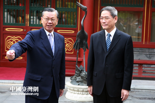 13日下午,中共中央台办、国务院台办主任张志军在北京会见了新同盟会会长许历农率领的台湾退役将领一行。(中国台湾网 陈佳慧 摄)