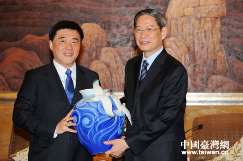 中国台湾网7月3日上海消息 中共中央台办、国务院台办主任张志军7月2日在上海虹桥迎宾馆会见了前来出席“2013上海台北城市论坛”的台北市长郝龙斌一行。