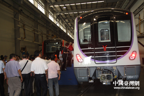 中国和平统一促进会赴湘考察团走进南车株洲电力机车有限公司的生产车间。图为南车株洲电力机车有限公司生产的地铁。(中国台湾网 王君飞 摄)