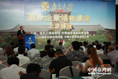 8月10日上午,由南京大学和中华两岸连锁经营协会联合主办的“两岸企业领袖讲坛北京课程”在京开课。(中国台湾网 扶海涛 摄)