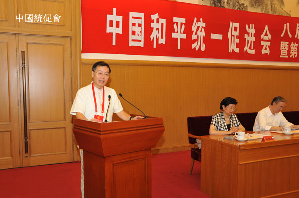 中国统促会常务理事,中共湖南省委常委、省委统战部部长,湖南中国和平统一促进会常务副会长李微微发言 中国统促会常务理事,中国和平统一促进会香港总会理事长杨孙西发言 中国统促会常务理事,澳门地区中国和平统一促进会会长刘艺良发言 台湾中国统一联盟主席王津平发言