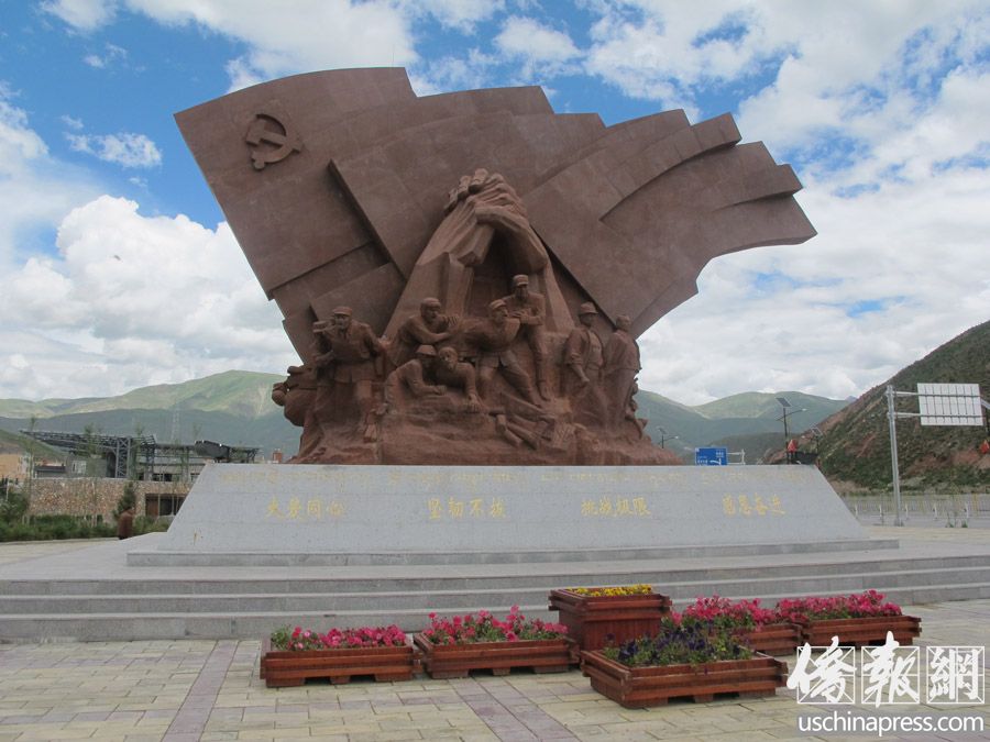 玉树市区结古镇的“4·14”抗震纪念雕塑