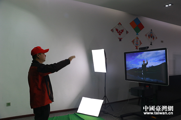 鲁朗小镇游客中心,游客通过智能拍照设备,可自行选背景图,拍照后用手机扫二维码将照片存入手机带走。(中国台湾网 普燕 摄)