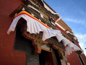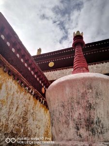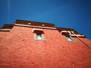 南美新闻网西藏报道:红色的墙是大殿,白色的墙是僧舍。蓝天之下,是触手可及的信仰。