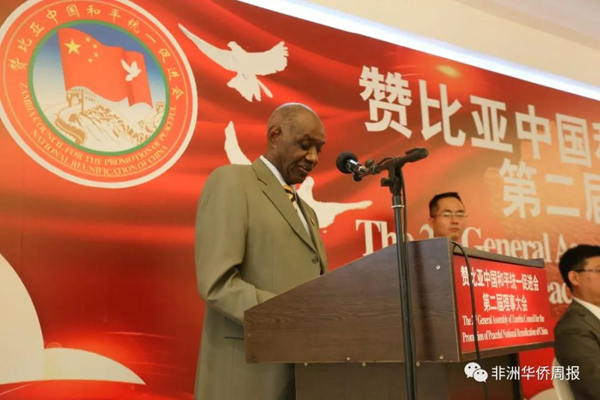 赞比亚中国和平统一促进会名誉会长弗农·姆旺加致辞