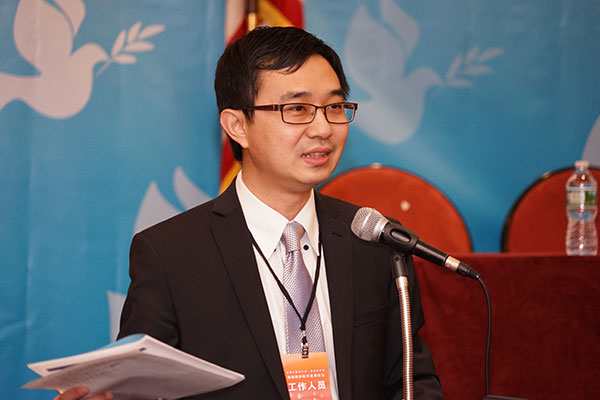 2017年正值纽约中国和平统一促进会成立35周年,马粤与团队商议决定,承办全美中国和平统一促进会联合会年会。马粤认为,由于台湾当局拒绝承认“九二共识”使得两岸关系和平发展受到威胁,此时两岸人民以及世界各地的中华儿女急需团结一致,共同反对“台独”,携手捍卫来之不易的和平发展果实, 因此将大会主题定为“海峡两岸和平发展论坛”。马粤希望以此次论坛为平台,邀请来自台湾海峡两岸及全美各地关心中国和平发展、支持中国和平统一的各界人士共同交流,为当前局势下的两岸关系出谋划策。历经几个月紧锣密鼓的准备,大会于2017年12月2日在纽约隆重举行。来自中国外交部、国台办、全国人大、中国侨联、中国和平统一促进会、中国驻美大使馆、中国驻纽约总领馆,台湾新党、国民党孙文学校、中华统一促进党、全美16个统促会组织的嘉宾代表,以及大纽约地区各侨团爱国人士共400余人出席大会。中国驻美公使李克新、国台办港澳局局长顿世新、中国和平统一促进会副秘书长韩晓光、中国社科院台研所副所长朱卫东、台湾新党主席郁慕明、孙文学校校长张亚中、中华统一促进党主席张馥堂等两岸知名人士发表讲话。大会期间,马粤亲自主持了有关“海峡两岸青年人如何为和平发展贡献力量”的分论坛,邀请来自台湾的新党年轻骨干王炳忠、侯汉廷与旅居美国的中国大陆、香港青年对话交流。会上,来自海峡两岸以及全美各地的嘉宾围绕如何维护两岸关系和平发展、促进中国和平统一展开热烈讨论。讨论中,大家对许多具体问题各持己见,看法各异,但始终在维护两岸关系和平发展、推动中国和平统一的共同目标上有着高度共识。大会期间,全美中国和平统一促进会举行换届仪式,马粤接受推选接任新一届全美中国和平统一促进会联合会执行会长。大会成功举办,交流成果斐然,给与会代表们留下了深刻印象,并在纽约地区引起了很大的轰动,同时也为纽约中国和平统一促进会未来发展,以及中国反“独”促统事业在美国的发扬光大开启了新征程。