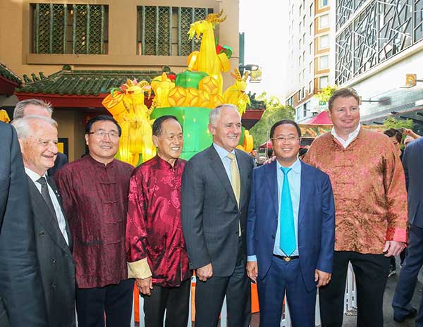 2016年2月12日,黄向墨在悉尼中国灯会开幕典礼上与澳大利亚联邦总理特恩布尔合影