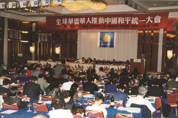 2000年8月25日,该会的主要成员以德国华联会的名义,在柏林与欧洲中国和平统一促进会共同举办了首次“全球华侨华人推动中国和平统一(柏林·2000)大会”。来自五大洲64个国家与香港地区、澳门地区、台湾地区600多位代表参加了会议。全国政协副主席、中国统促会会长万国权出席大会并做主旨发言。大会发表了《呼吁全世界中华儿女为促进中国和平统一努力奋斗》的共同声明,发出了全球华侨华人反“独”促统的动员令。