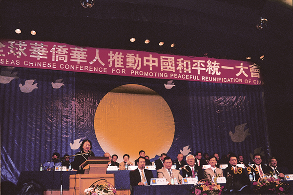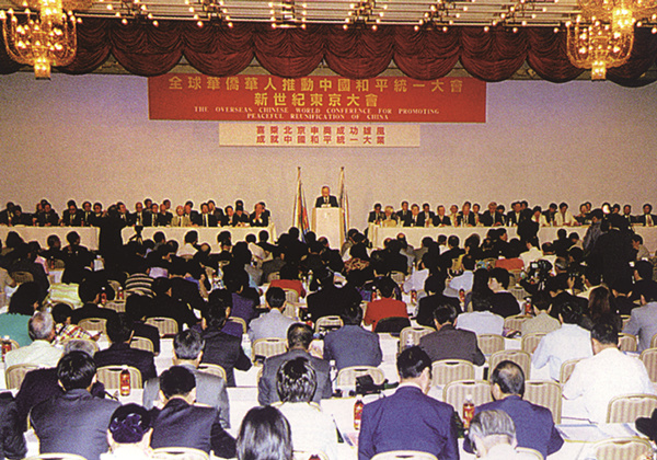 2001年7月16日,由日本中国和平统一促进会联合旅日爱国侨团主办“全球华侨华人推动中国和平统一(东京)大会”,来自世界44个国家和地区的海外统促会负责人及华侨华人社团的600多名代表出席。全国政协副主席、中国统促会会长张克辉出席大会并做主旨发言。大会提交论文100多篇,谴责了“台独”势力分裂中国的企图,呼吁早日实现和平统一。大会通过了《新世纪华侨华人推动中国和平统一大会宣言》,表达了全球华侨华人坚持一个中国原则、反对“台独”分裂图谋、完成祖国统一大业、实现中华民族伟大复兴的共同心声。这次大会强调和平统一要寄希望于台湾人民,突出了台湾同胞的声音。