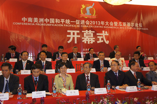 2013年6月8日,中南美洲中国和平统一促进会在厄瓜多尔举办年会暨瓜亚基尔论坛,来自10个国家统促会的325位代表参会,大会主题是:中华民族本系一家,携手共促和平统一。